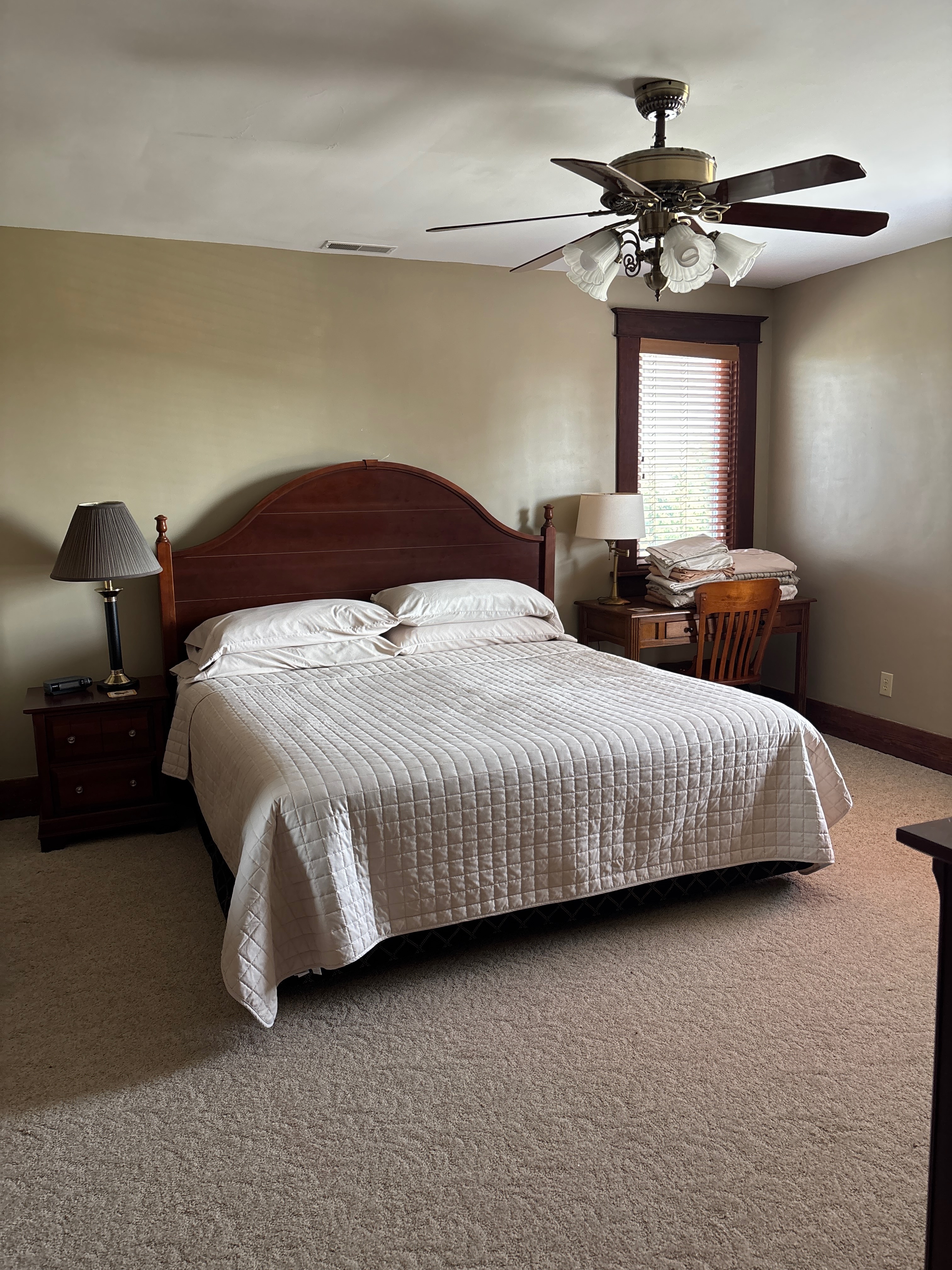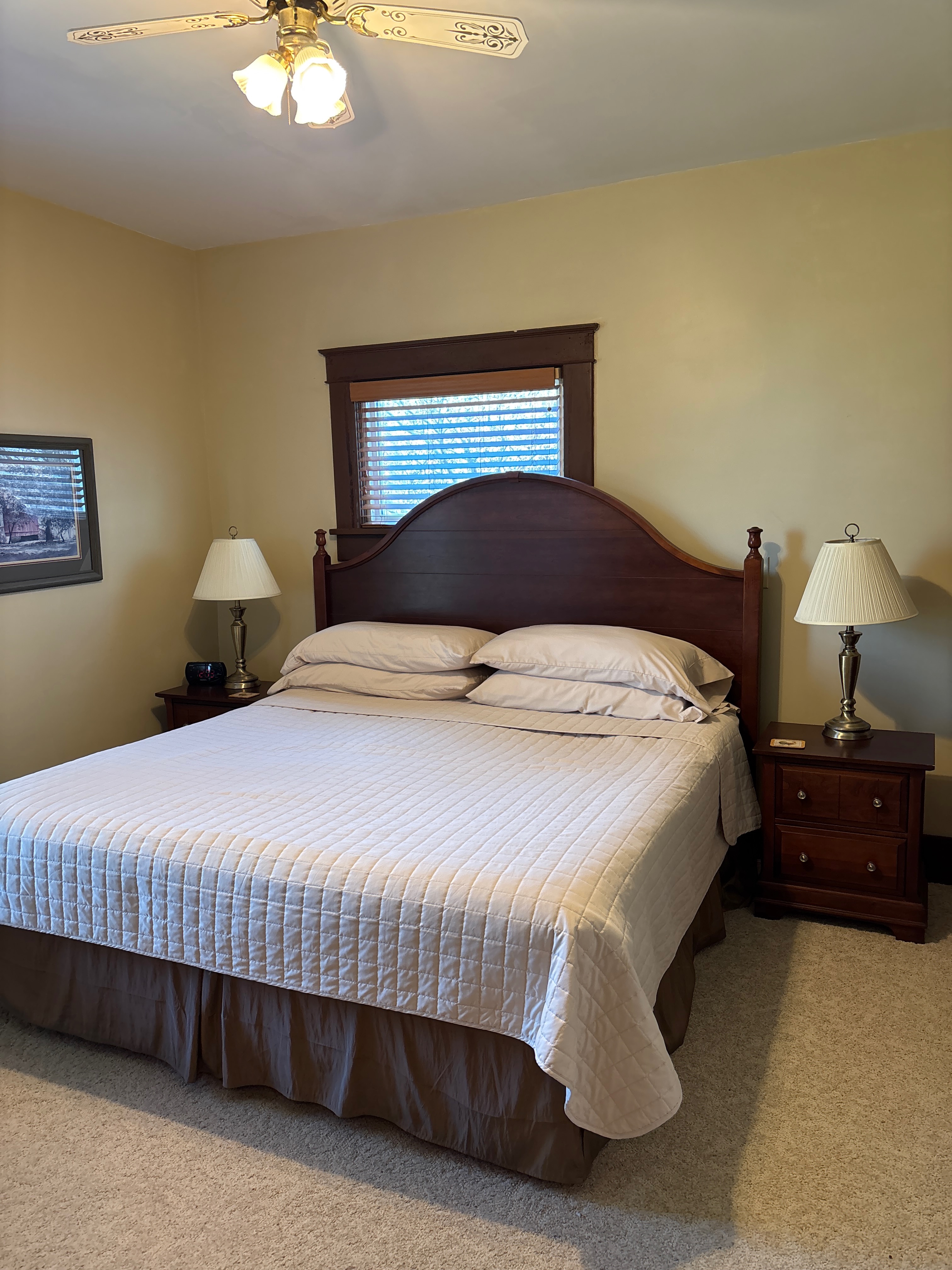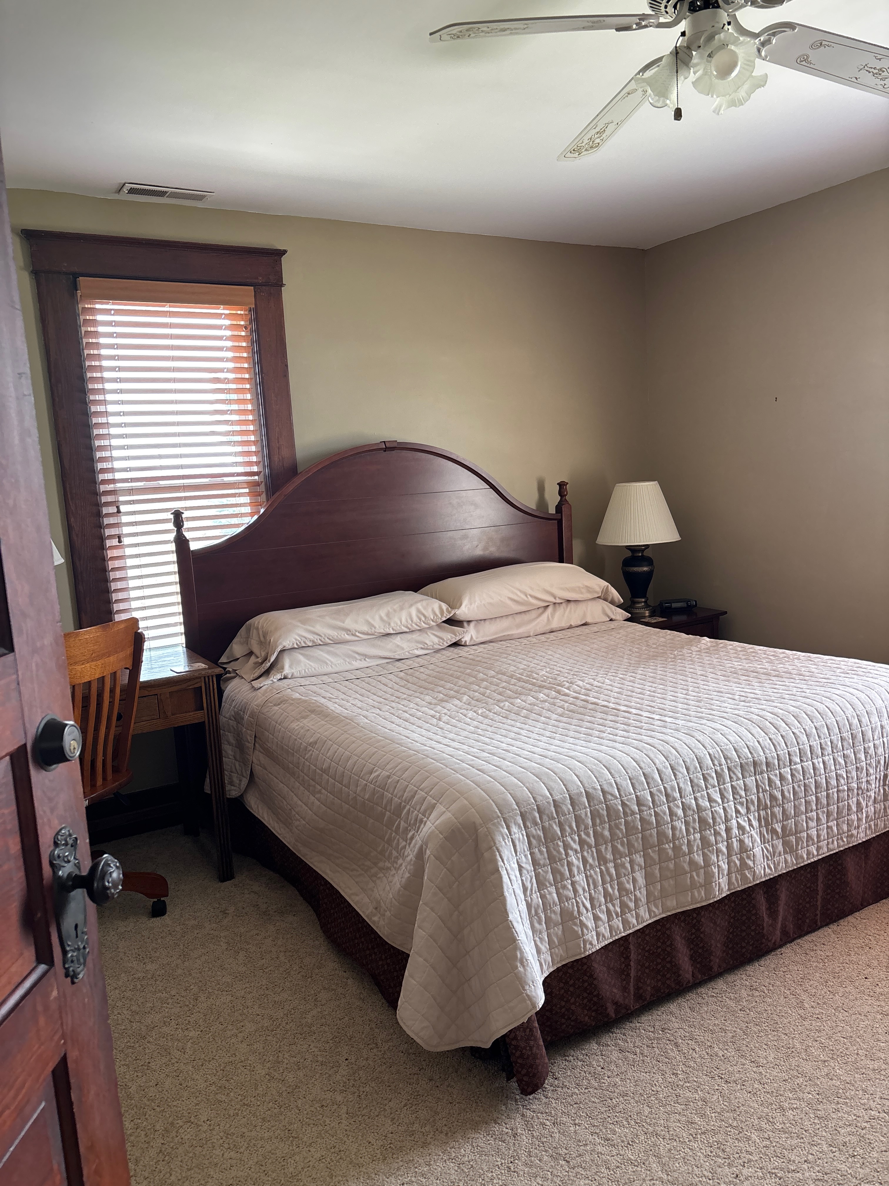 Your gateway to the best of Parke County — Turkey Run State Park, Shades State Park, Lake Hardin, 31 covered bridges, and the legendary Covered Bridge Festival. This historic farmhouse offers four bedrooms, four private baths, and a sitting room with two pull-out twin beds, in a historic farmhouse with beautiful sunrise/sunset farm views. Enjoy the full kitchen, deck, gas grill, and large yard. The adjacent barn suite adds a bedroom and sofa-bed for overflow guests. Book one or combine both.